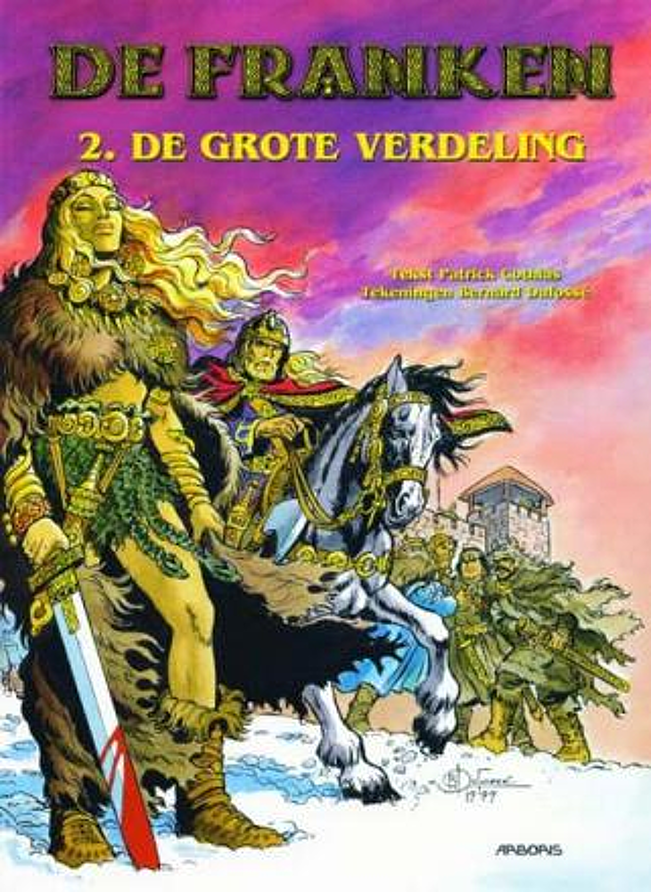 002 grote verdelingAan het eind van de zesde eeuw besteedde bisschop Gregorius van Tours een paar jaar van zijn leven aan het in dikke kronieken vastleggen van de geschiedenis van zijn tijd. Hij leefde in de glorietijd van de Franken, die toen een groot deel van Europa (o.a. in Frankrijk, België, Nederland tot de grote rivieren en een deel van Duitsland) de lakens uitdeelden.