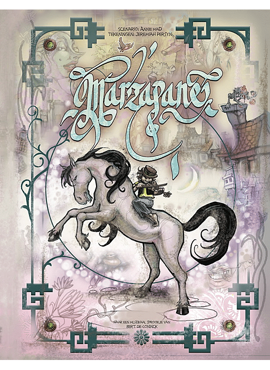 Lang geleden, heel lang geleden, misschien wel eeuwen geleden leefde een prachtig paard. Zijn vacht had de kleur van roze champagne en zijn manen waren zwart als de muts van een kolenbrander. Zijn naam was Marzapane. Marzapane begint dan wel als een klassiek sprookje, het verrassende verhaal schakelt al snel in een rotvaart. Want de tijd in dit sprookje gaat in galop! Ook voor gewezen droompaard Marzapane, ooit het paradepaardje van koningen en prinsessen. In een barokke en vaak bitse wereld, bol van praal en (schone) schijn, kan hij de ratrace niet meer bijbenen. De tijd is niet mals voor oude helden. Een roemloos einde in de rookworstenfabriek komt gevaarlijk dichterbij. Maar dat zal Marzapane worst wezen! Hij besluit zijn loopbaan een nieuwe boost te geven en klopt aan bij uitzendbureau Bullshit & Veneno